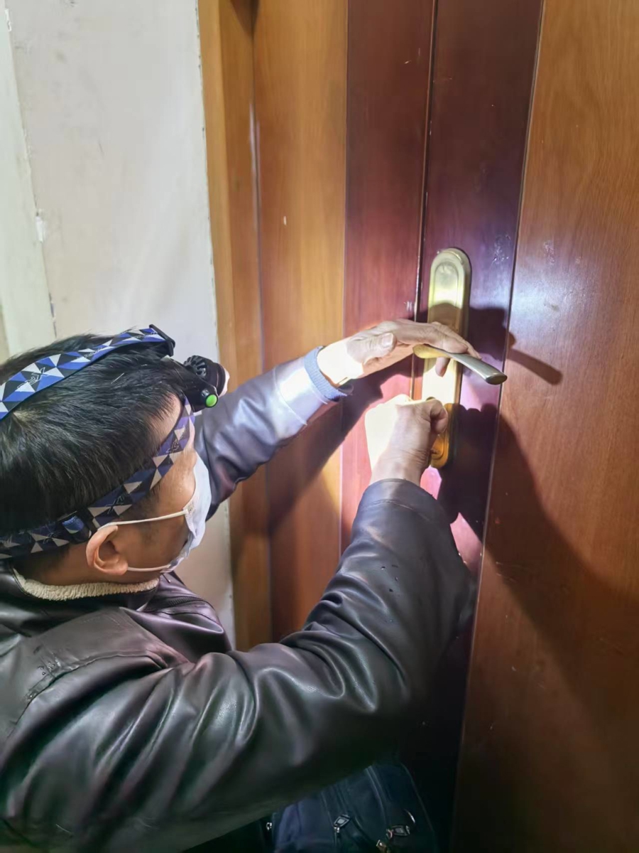 情况紧急,居委干部与物业安全员冒着风雪第一时间赶到现场。工作人员当机立断,一边联系社区备案的专业开锁师傅,一边持续通过电话安抚老人情绪,反复叮嘱“不要慌,我们就在门外”。开锁师傅响应迅速,抵达现场并顺利开锁。