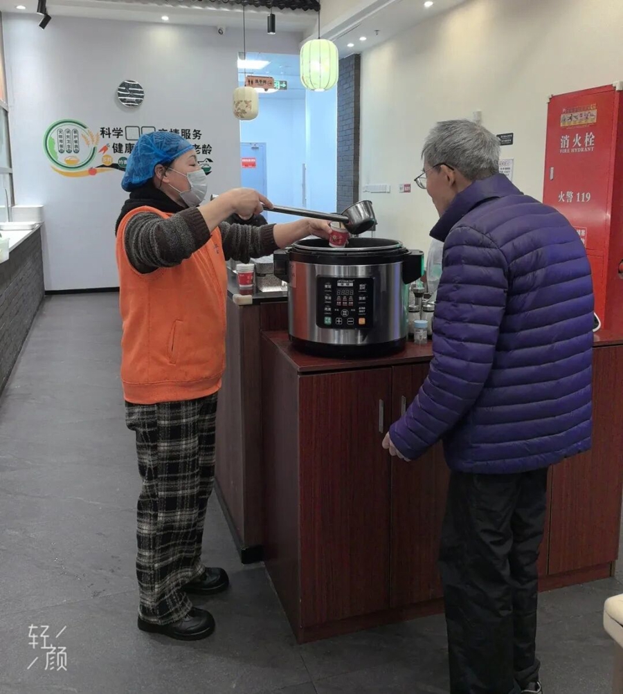 在江湾镇街道,第一市民驿站社区长者食堂及三门路社区长者食堂于就餐时段持续免费供应红糖姜茶与热水,让居民就餐时暖身又暖心。寒潮期间,为老送餐服务依旧温暖延续,送餐员准时上门,将热乎饭菜与一声问候送至老人家中。
